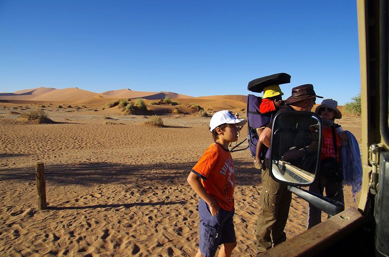 へぇ、子ども抱えて高さ400m近い砂丘に登るんだ。