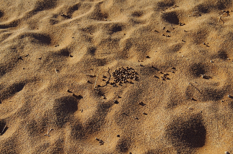 少し歩くと、さっそくレイヨウか何かの糞が落ちていました。