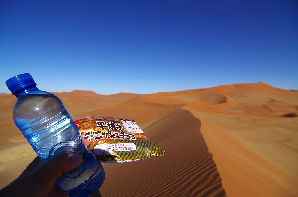 開拓できたことにすっかり満足して、温くなった水と日本から持ち込んだパンを朝食代わりに頂きます。