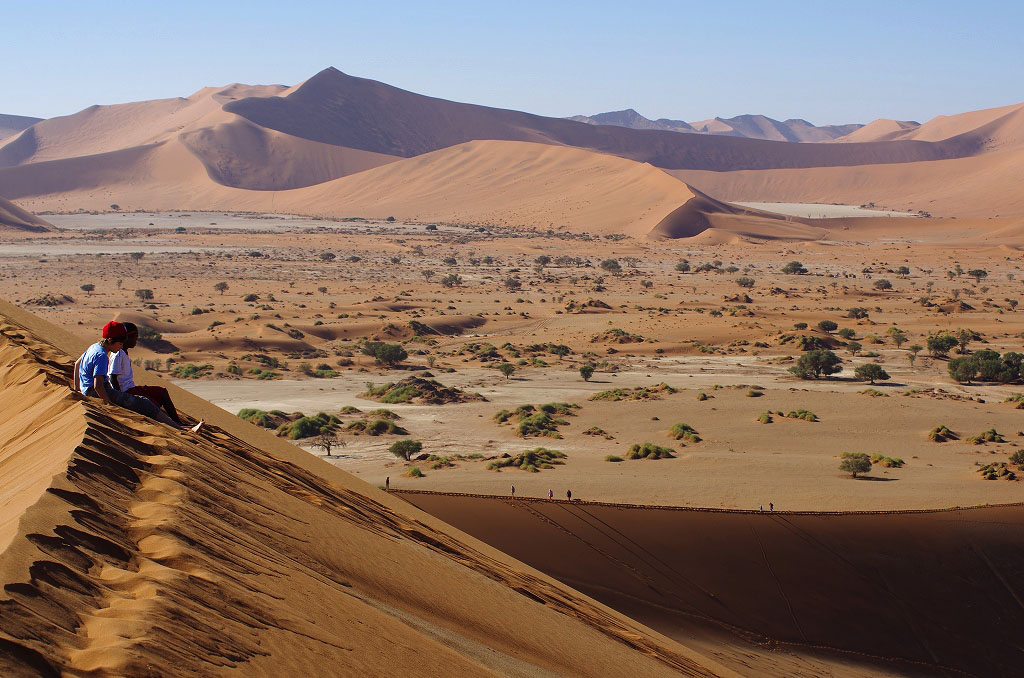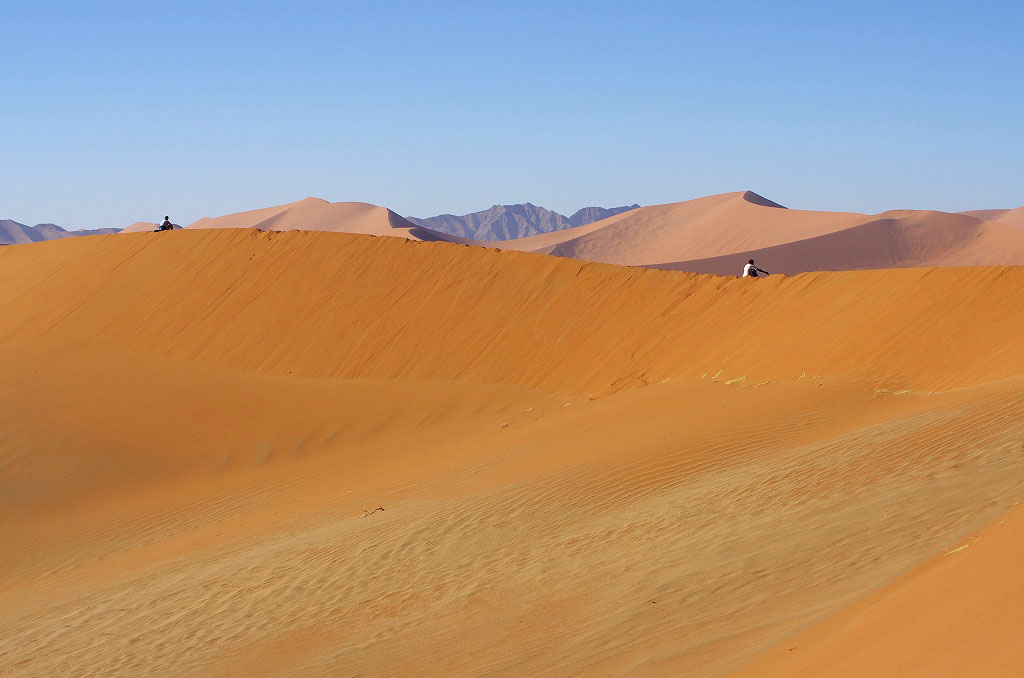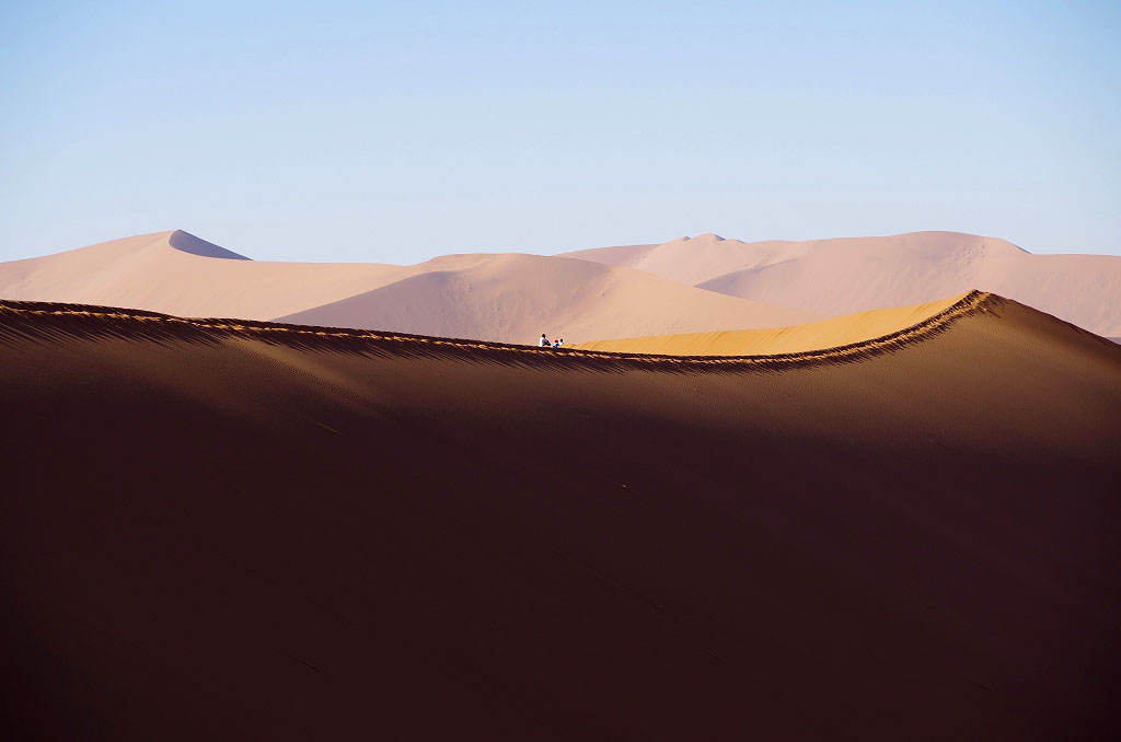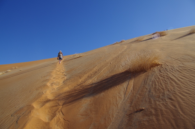 こちらは、砂丘の斜面を黙々と登っていくカップル。
