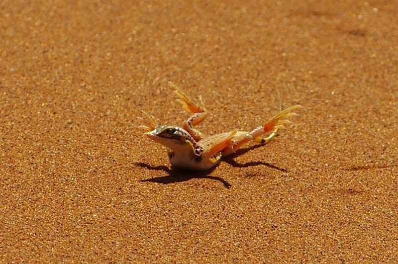 砂漠の砂の温度が徐々に上がってきてるので、体温が上がりすぎないようにしてるんですね。