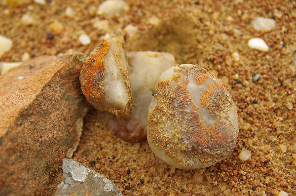 ほとんどの石にへばりついていたので、逆についてない綺麗な石英を探してひとつ拾い、お土産に持って帰ることにしました。