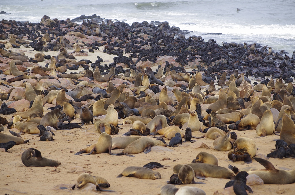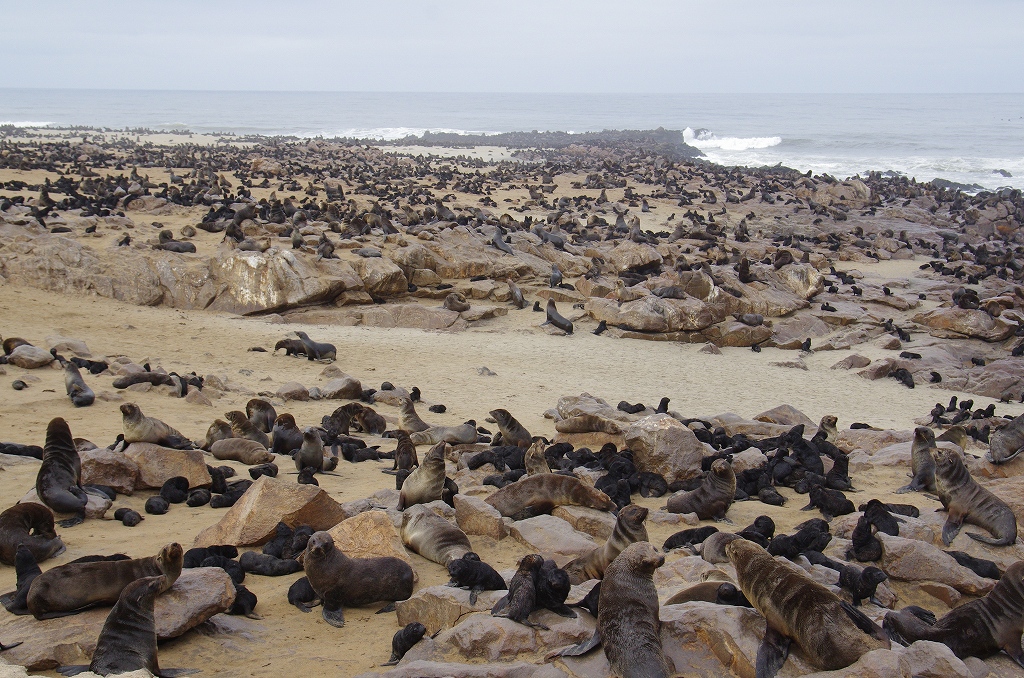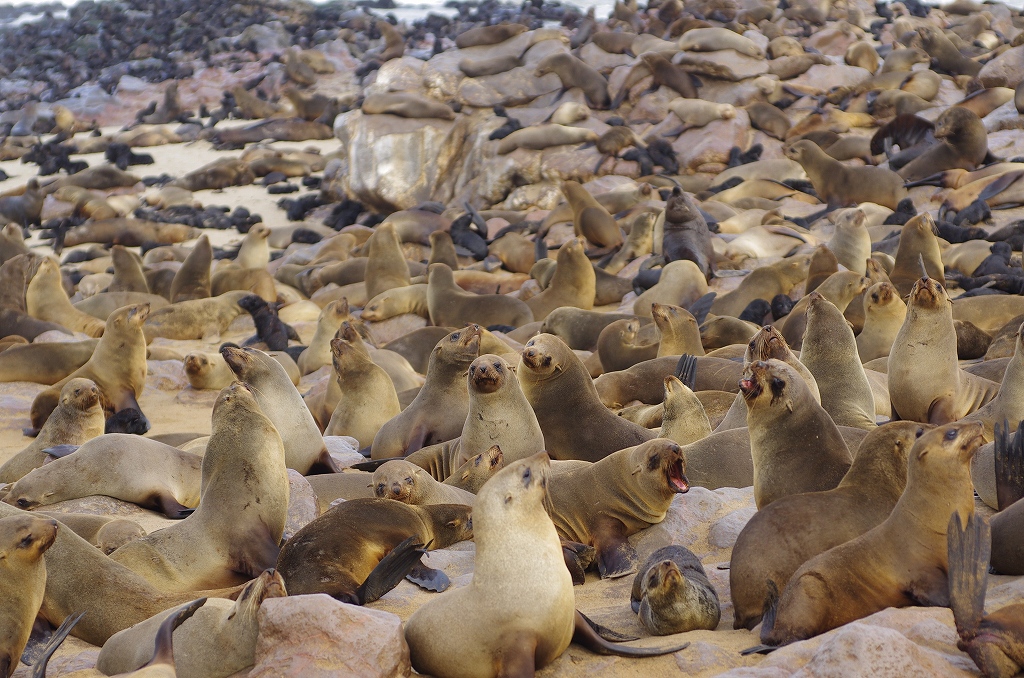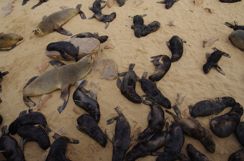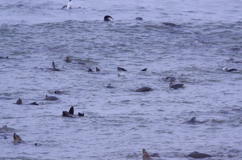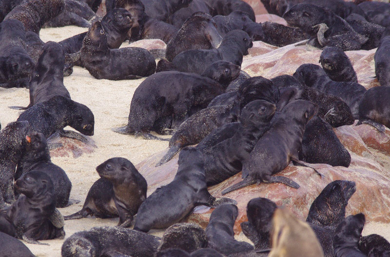 繁殖期の11月、12月にはその数が20万頭を越えるとのことですが、本当に視界いっぱいのミナミアフリカオットセイ(Arctocephalus pusillus)