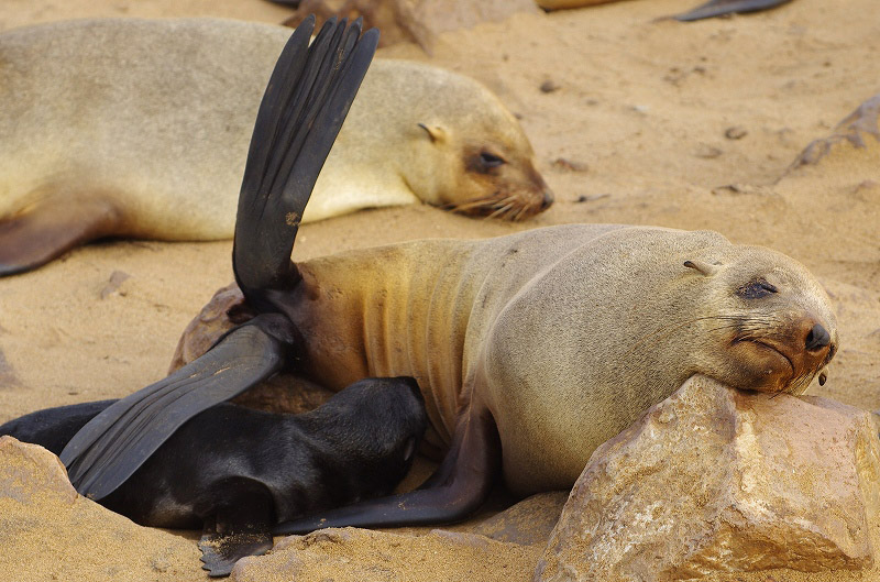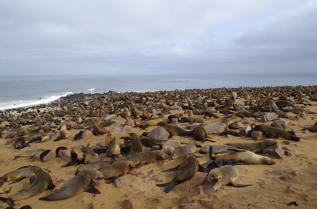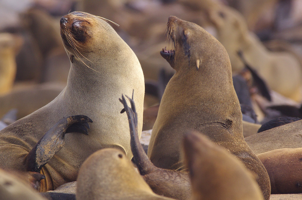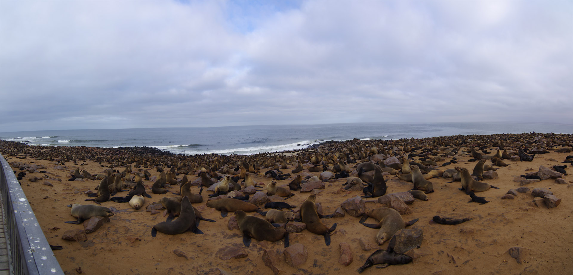 繁殖期の11月、12月にはその数が20万頭を越えるとのことですが、本当に視界いっぱいのミナミアフリカオットセイ(Arctocephalus pusillus)