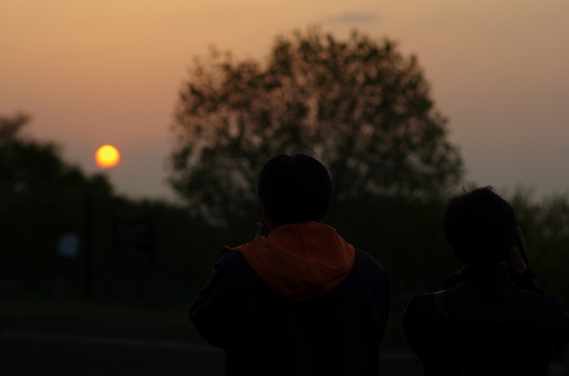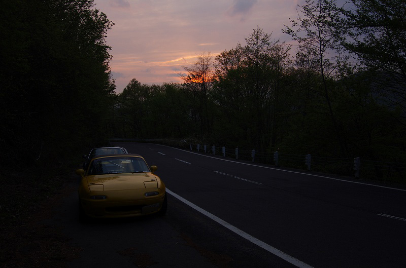 目的地となる峠に到着する前に太陽が雲の中に沈みそうだったので、ここで夕日を拝みました。(TABさんに任せていたら、危うく日が沈んだ後に観察することになるところでした)