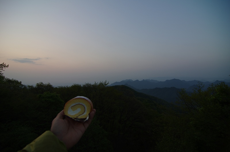 日の出ちょっと前の時間に旧碓氷峠見晴らし台に到着しましたが、水平線方向に雲があるので、太陽を拝むのはもう少し後になりそうです。