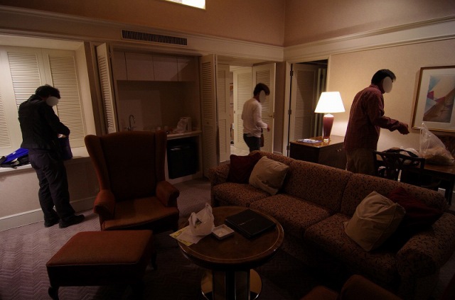 宿泊する部屋はセミスイートのダイニングに寝室が2つ、ガラス張りの浴室なんかがあって、この面々でいったいどんな素敵な夜を過ごすことになるんだろうと思った次の瞬間、