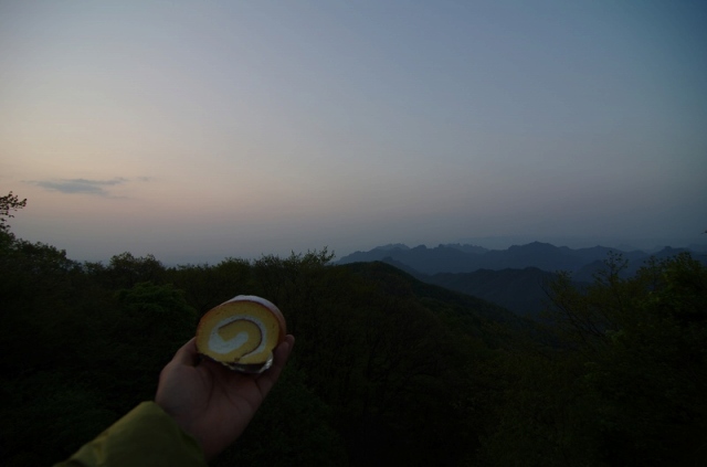 目的地となる峠に到着する前に太陽が雲の中に沈みそうだったので、ここで夕日を拝みました。(TABさんに任せていたら、危うく日が沈んだ後に観察することになるところでした)