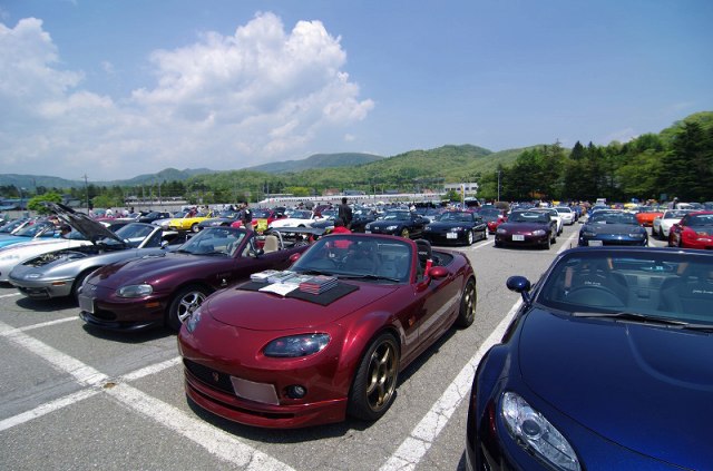 会場までの移動でTABさん先頭は良くないと判断し、ぼーっとしてるように見えるだけで実はしっかりもののやんしーさんを先導役に指名したら、他所様のロードスターを巻き添えにしたまま5台で迷子に・・・(軽井沢で迷子になるのは才能が必要だと思いますよ)