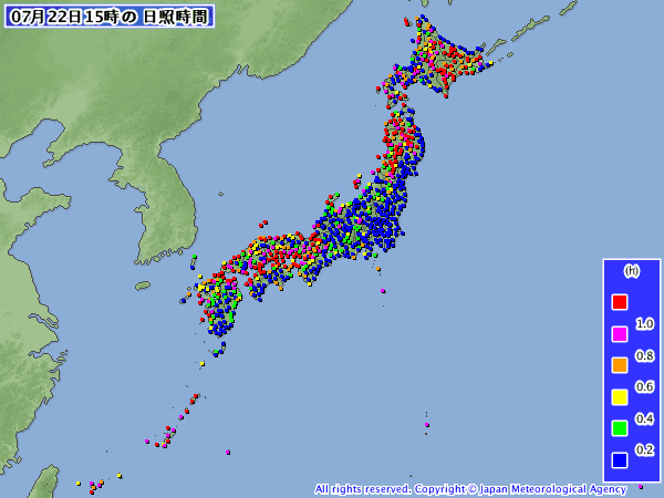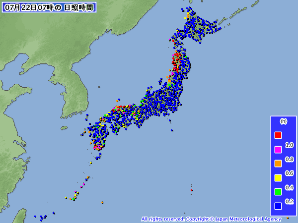 いや〜、ほんと、日本海側の津軽から山形ぐらいまでしか晴れない一日でした。
