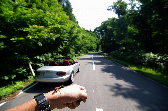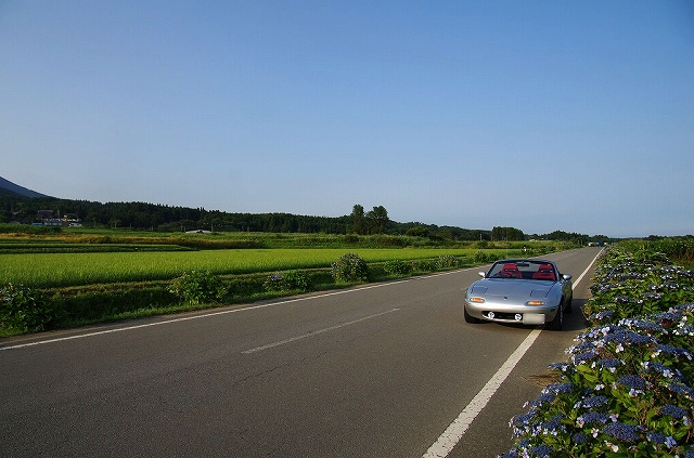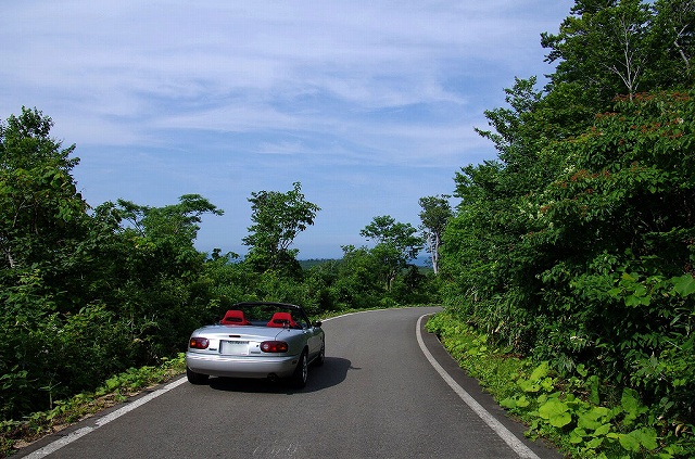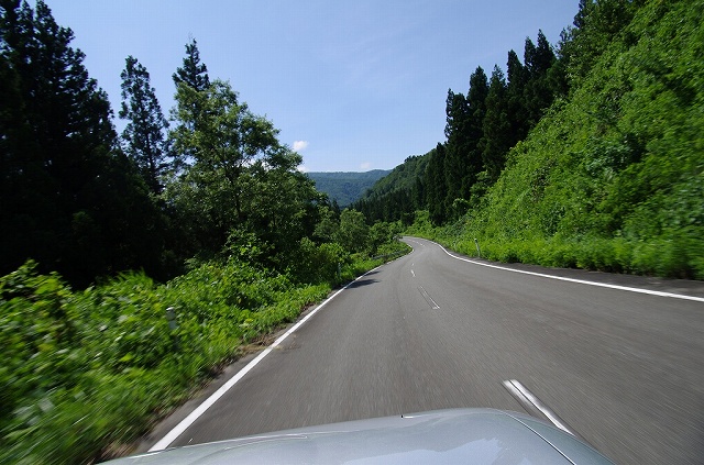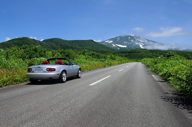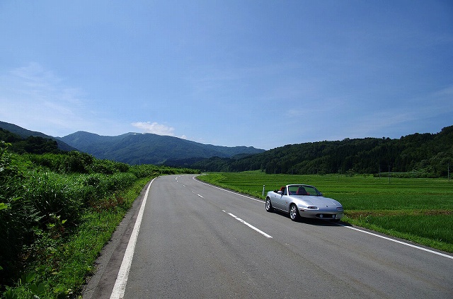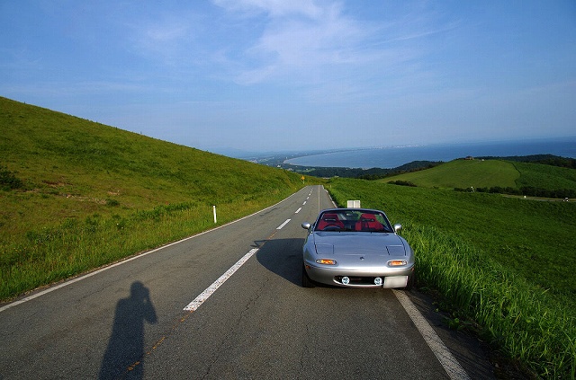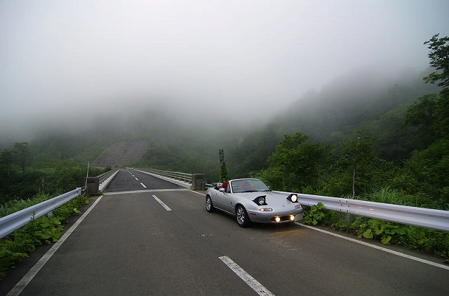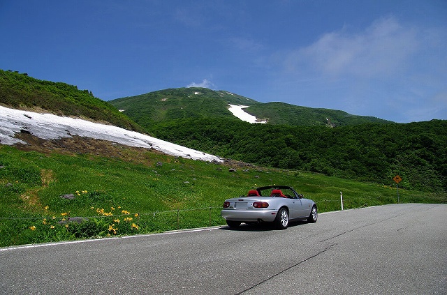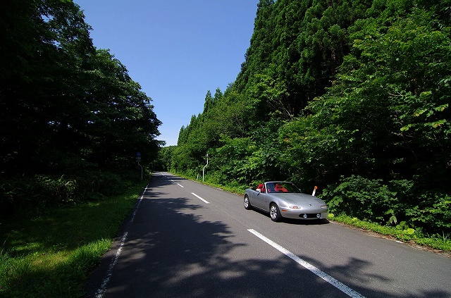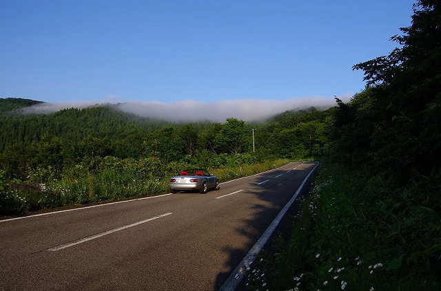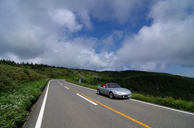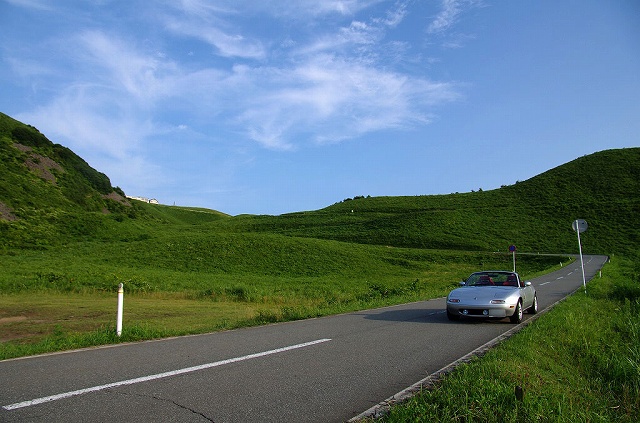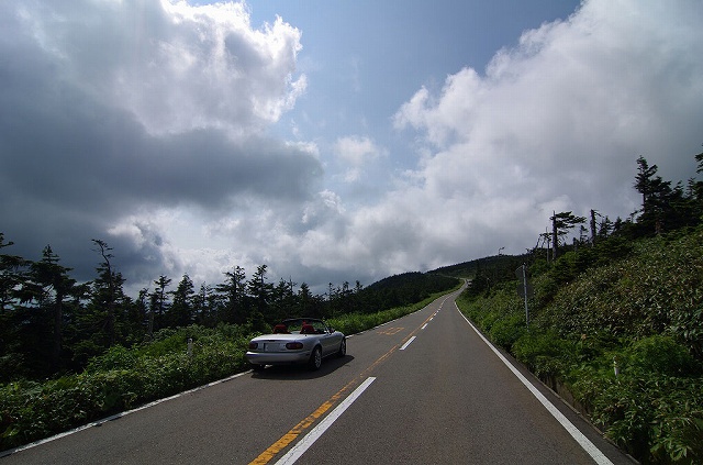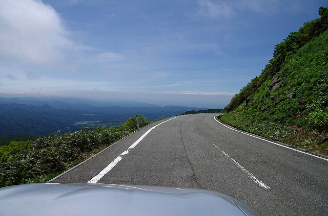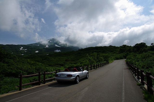 月山付近の高原牧場地帯を駆け抜けていくわけですが、エンジンフィールが変わってるし、トルセンデフに切り替わってるしで、マイロードスターなのにかなりぎこちなく、お互いよそよそしい感じがします。