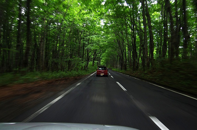 とあるタイトな左カーブ手前で虫の知らせというか、嫌な予感がして減速気味に入って行こうとしたところ、対向車のセダンが完璧なアウトインアウト(つま