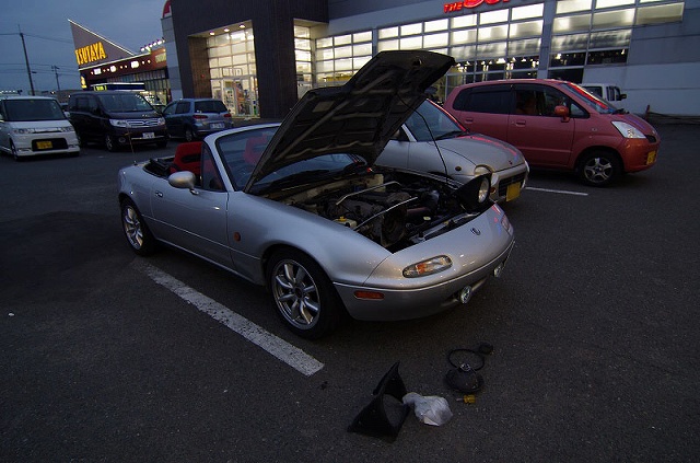 (10何年ぶりのNAのランプ交換。いろいろ忘れていたのですが、親切なメカニックのおじさんが、あれこれ教えてくれたのですぐに作業が終了しました。助かりました)