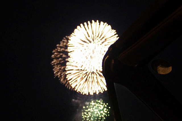 能代市の花火大会。(ガソリンスタンドのお兄さんいわく、とても立派な花火大会なのだとか)