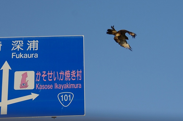 青看板には猛禽類の鳥がとまっていたのですが、撮影しようとしたら飛び立ってしまいました。