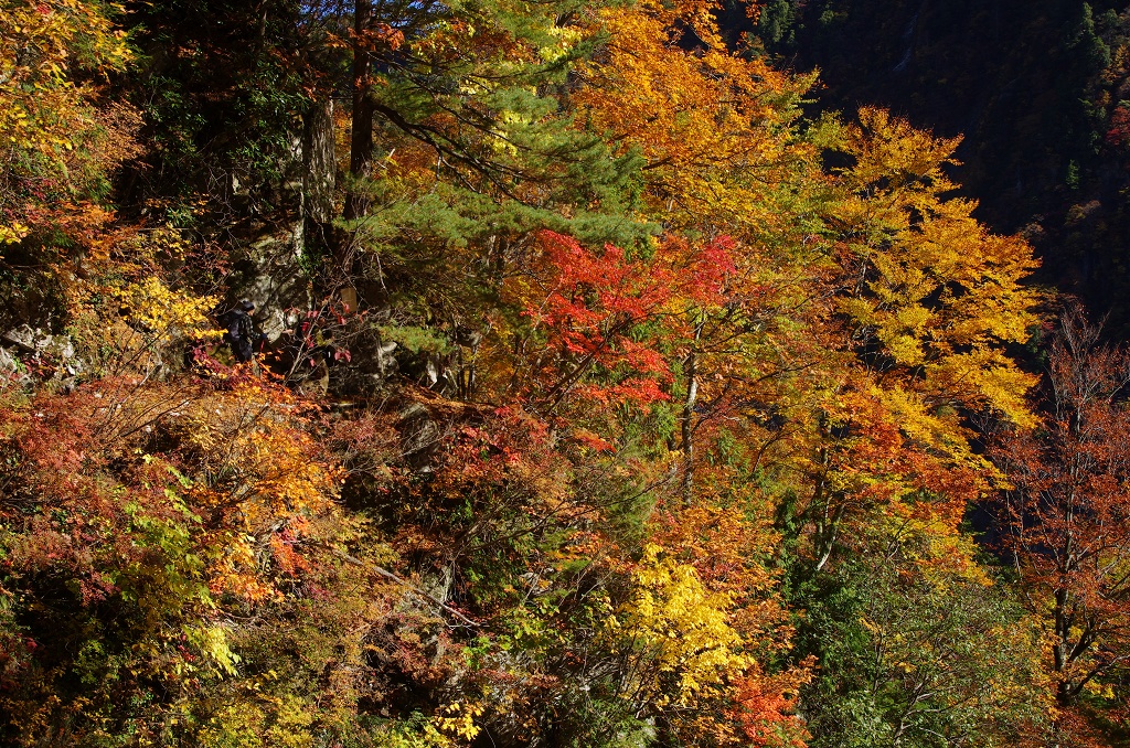 さすがにここまで下ってくると(標高500m前後)紅葉はまだこれからって感じですね。