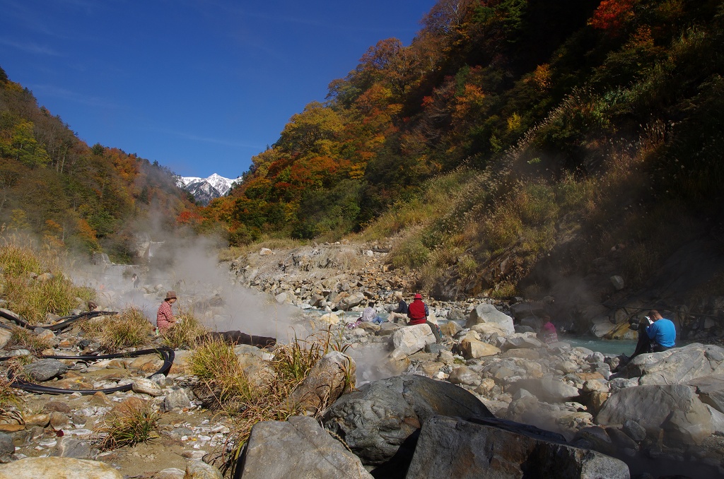 たしかに、ここから眺める白馬岳(ですかね?)は素晴らしい眺めで三脚立てて撮影に勤しんでいる方や足湯を楽しんでるカップル、温泉卵を作りながら昼食を食べてる方なんかがいっぱい居ます。