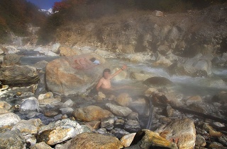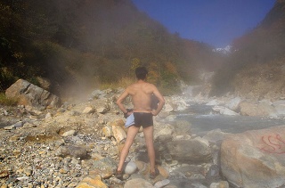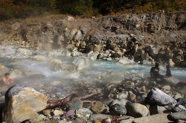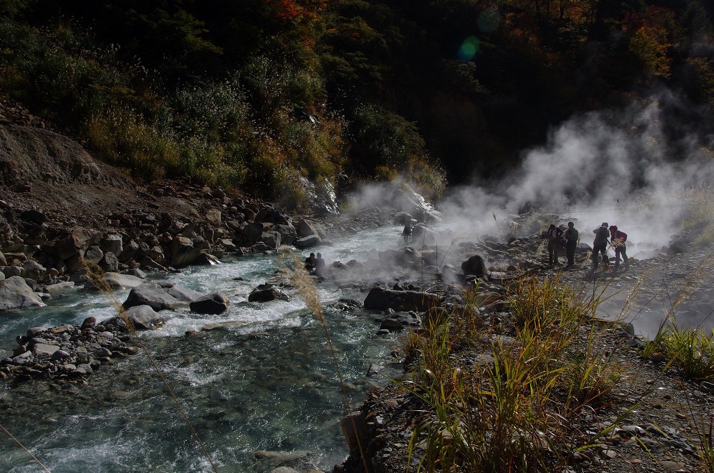 私はその中間に適温箇所らしき場所を発見して入ろうとしたのですが(ちゃんと二人に全裸になることを申告しましたよ)、なんせここは熱湯と川の冷水が混ざる温泉なのでまともに入れず結局すぐに退散しました。