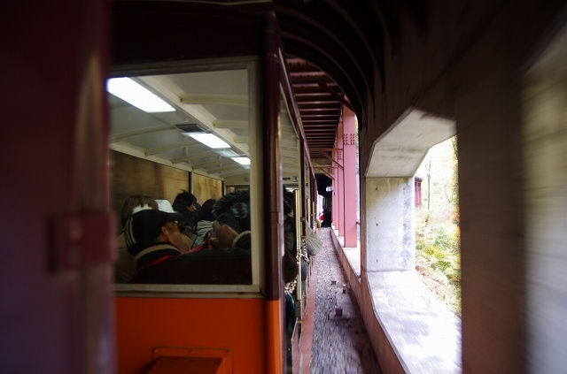 蕎麦をトロッコ列車の出発ぎりぎりまで食べてたせいもあり、プラットフォームに向かうとすでに座席を選ぶ余地がなかったのですが、、、、