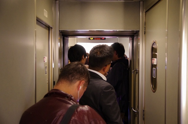 自由席からは乗客が大量に溢れだし、指定席は余裕で満席。