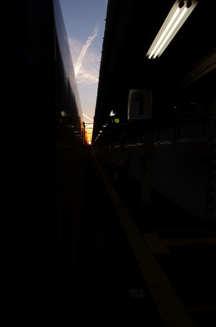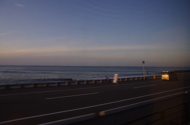 ちょうど糸魚川を通過するあたりで日が沈みました。