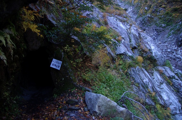 志合谷奥の長い曲がりくねったトンネルに入ったらメガネが曇ってしまい、懐中電灯が暗いのかと勘違いしてスイッチを弄ったらバッテリーが切れ気味だったらしくて灯りがつかなくなってしまい、危うく大パニックになるところでした。(本気で真っ暗で距離も長いし前後不覚に陥ると思うので、懐中電灯無しではまず歩けません。予備のヘッデンがありますが、まさか使うことはないだろうとザックの奥深くに放り込んでました)