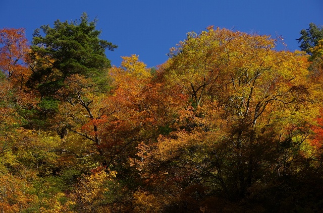 さすがにここまで下ってくると(標高500m前後)紅葉はまだこれからって感じですね。