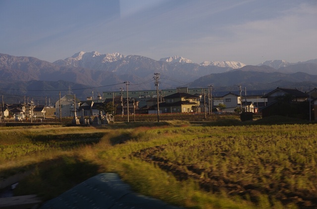 車窓からは剱岳。