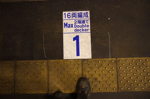 この先の状況はわかっていたのにもかかわらずダウンジャケットをザックの奥深くに仕舞い込んでいたので、通常歩く用の全ての防寒着を着こんでから改札をくぐります。(13:50)