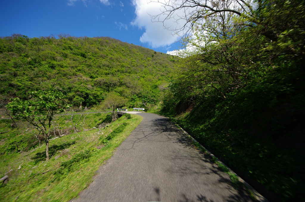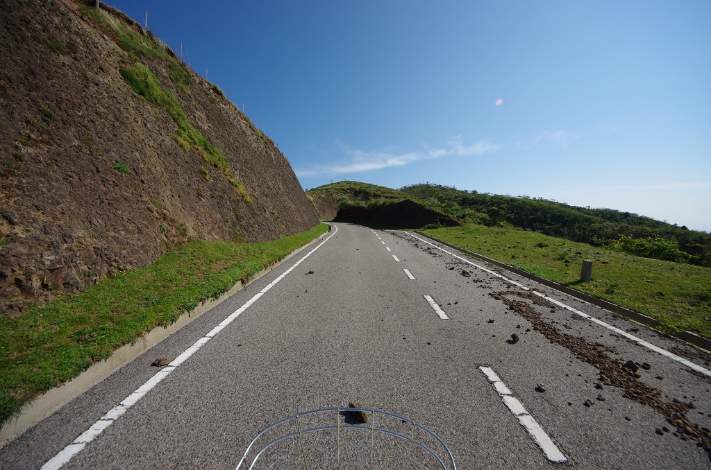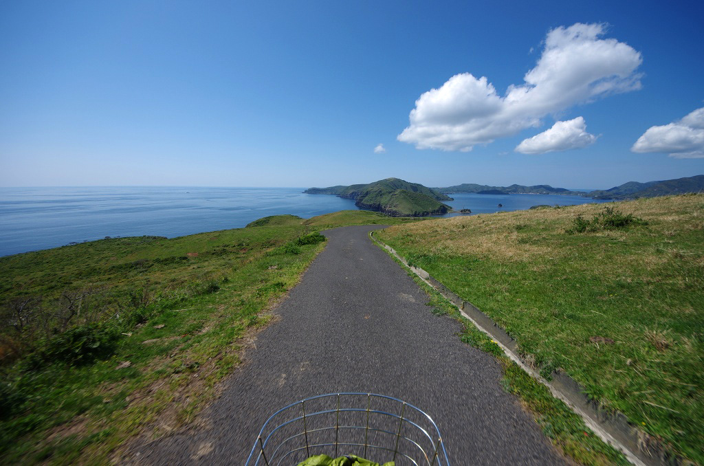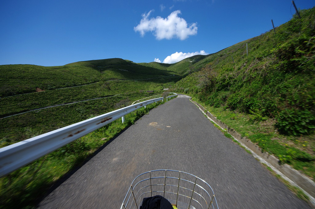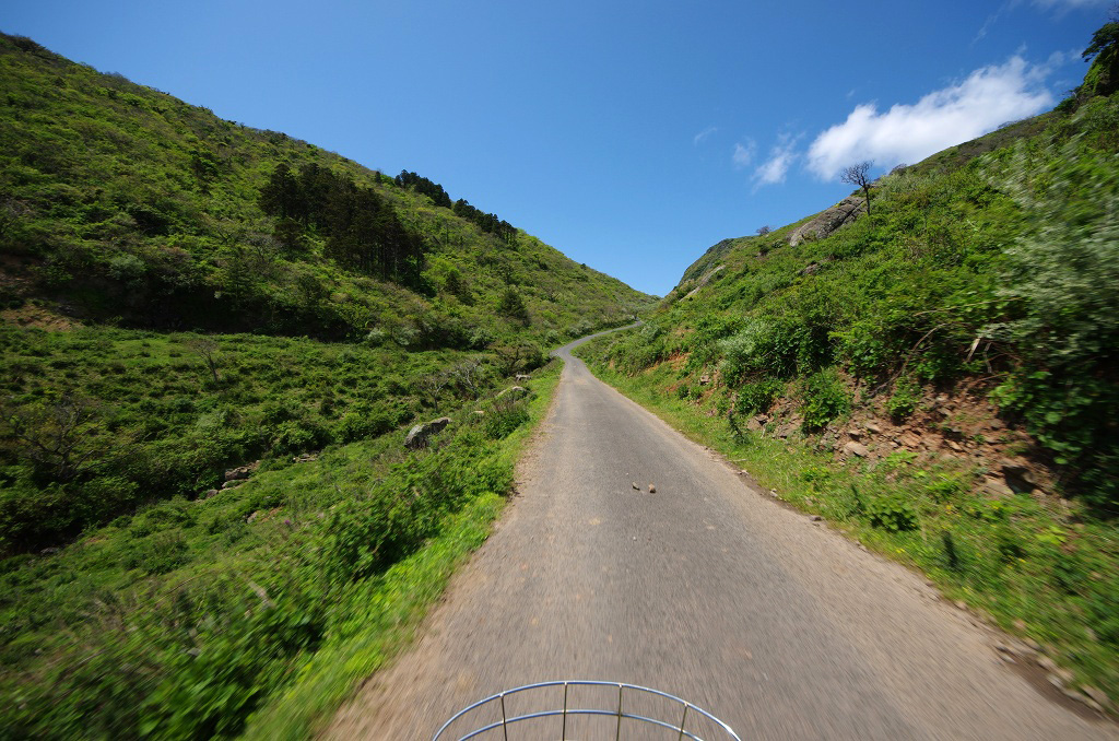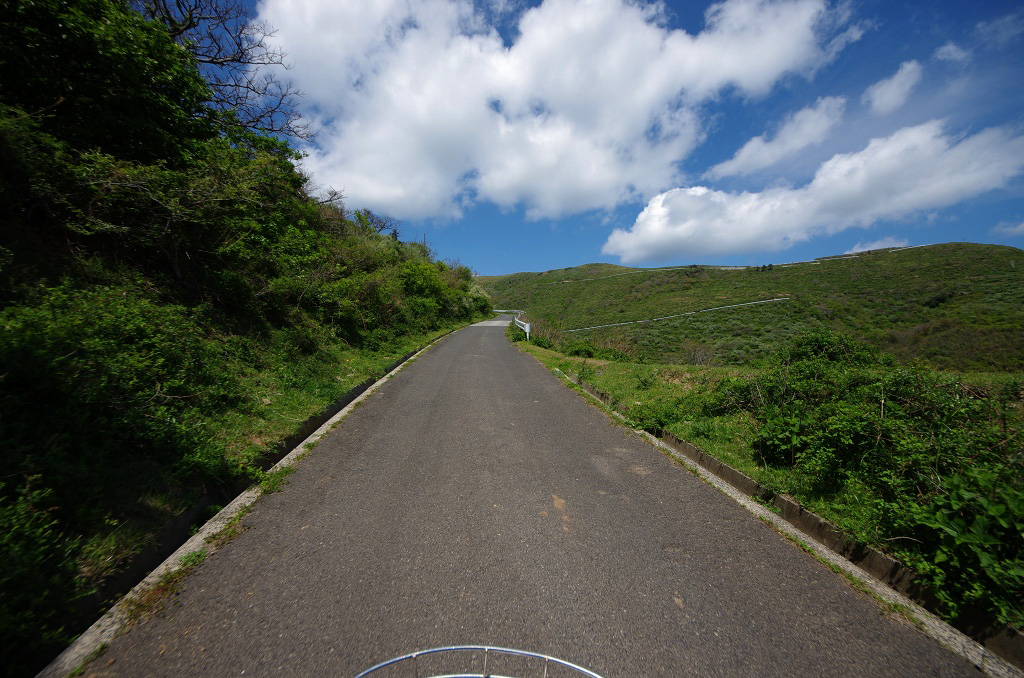 島の南側は海沿いを走る区間はほとんど無く、すぐに山側に回りこんでアップダウンが始まります。