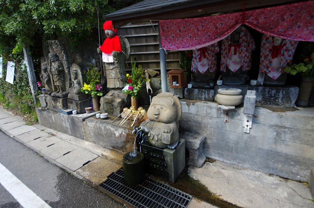 河井地蔵さんの湧き水で喉を潤します。