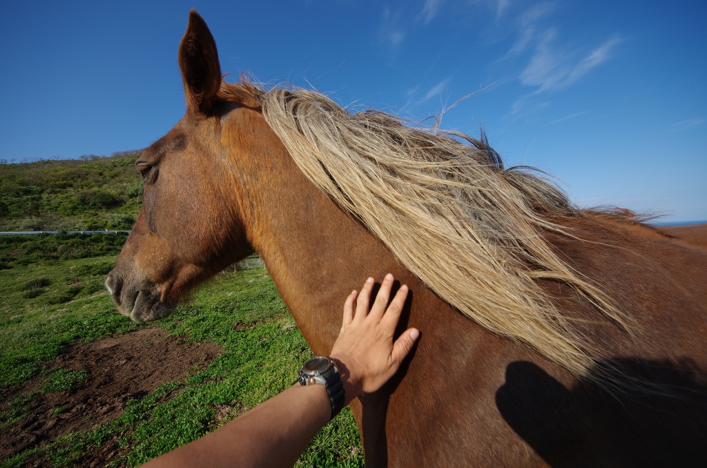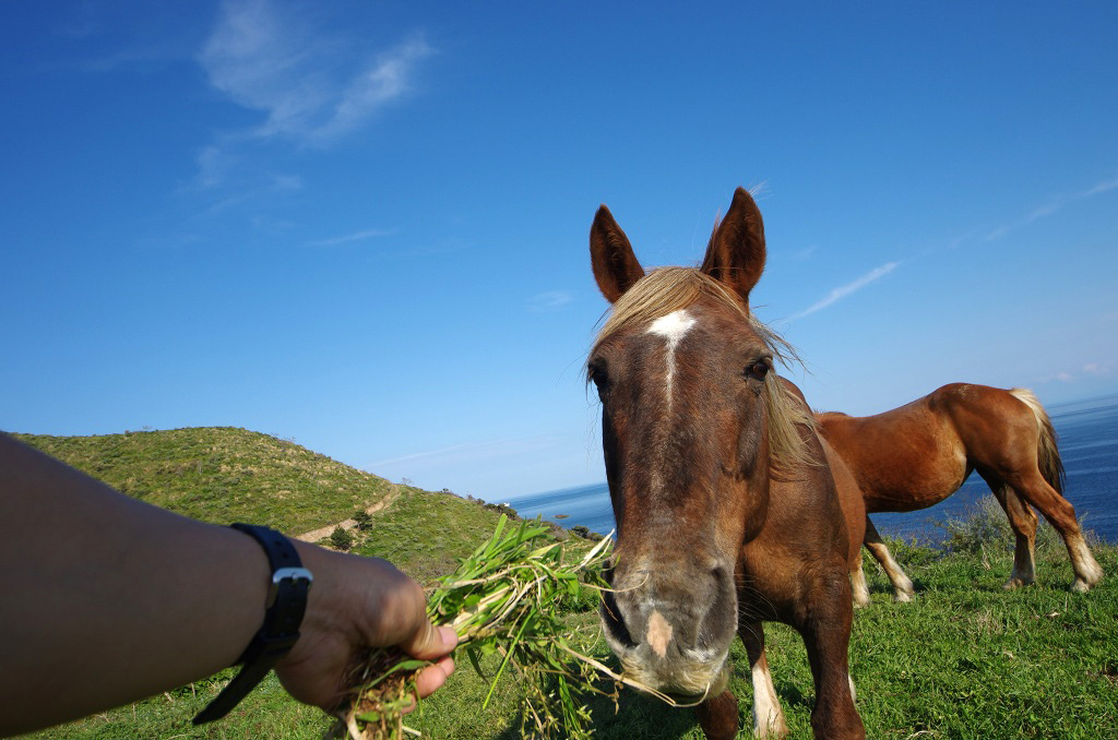 馬が放牧されていたので、試しにその辺の草をむしって差し出してみたところ・・・・