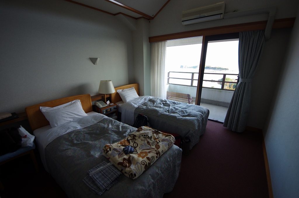 宿泊するだけなら民宿クラスで十分だったのですが、(キャンプ場もありますが、 せっかくなので海の幸を堪能したいですしね)、寸前の予約ではレンタカーが借りられず、観光協会からこのホテルにレンタサイクルがあると聞いて、このホテ ルにレンタサイクルとセットで予約を入れたのでした。