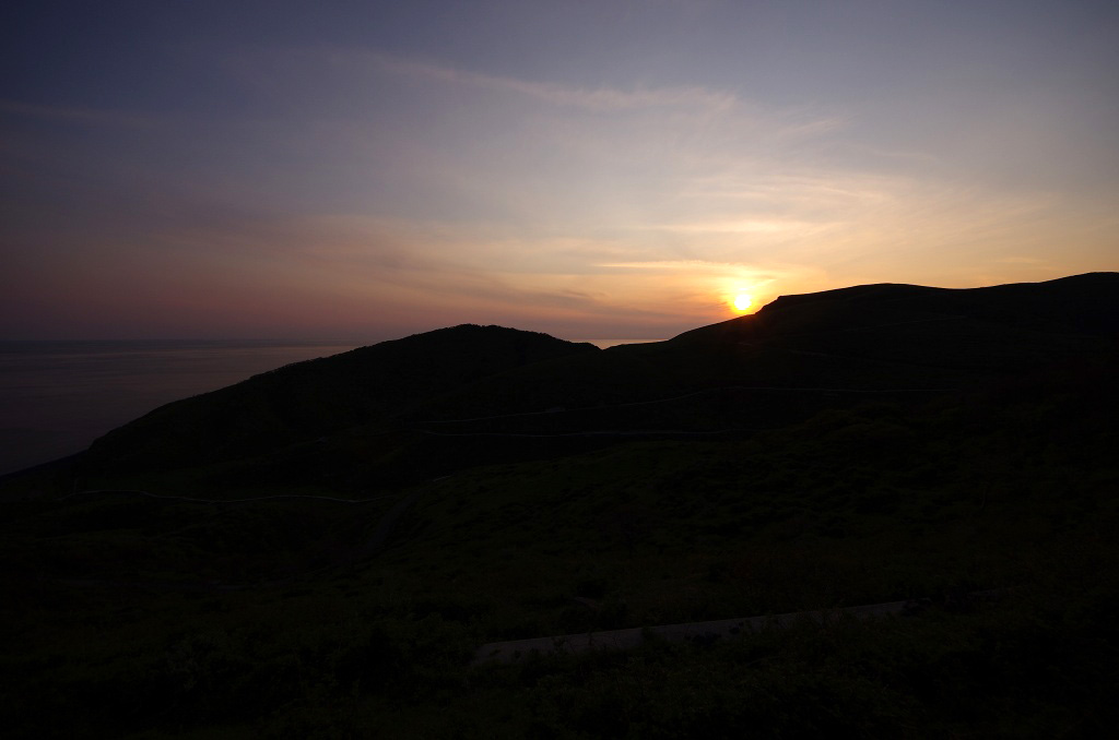 夕日目的だったんですが、えらい遠く(赤壁かアカハゲ山付近)まで行かないと水平線に沈む夕日は拝めないのと、今にも霞の中に沈みそうだったので途中で諦めて戻ってきてしまいました。(18:30)