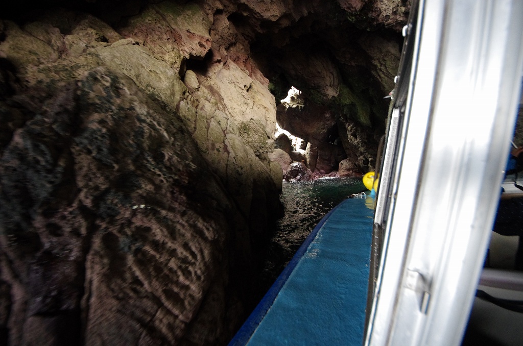 クライマックスは日本版の青の洞窟と言われている「明暗の岩屋くぐり」なのですが、この日は波が高くて断念。(ベタ凪じゃないと船が天井に当たるので無理なんだそうです。確率は1/5ぐらいだとか)