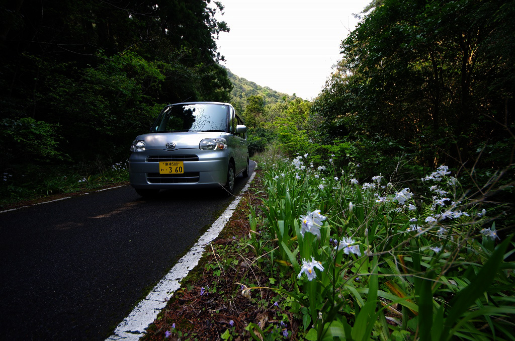 道路脇にはたくさんシャガの花が咲いていて綺麗です。