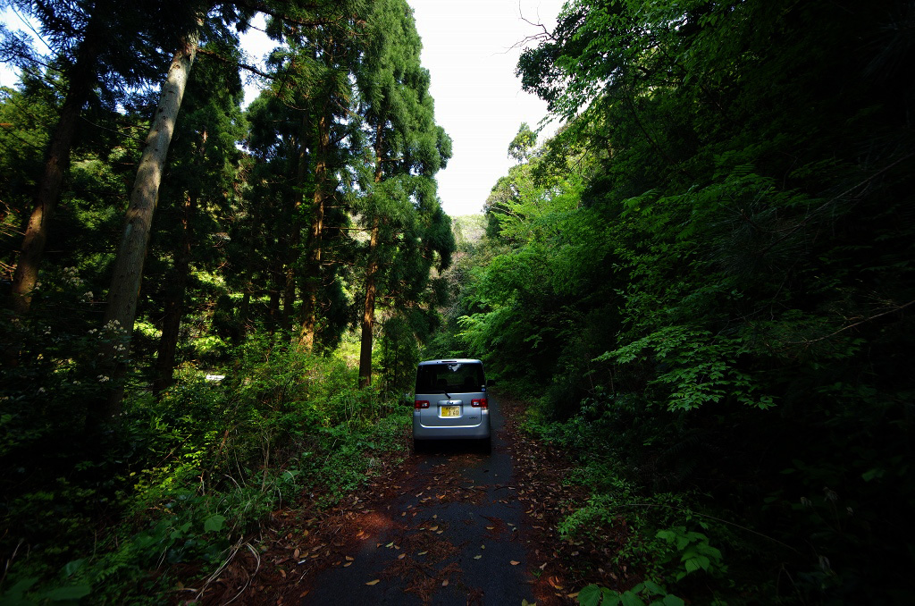 再び舗装路に切り替わった焼火神社のところで、お客さんの帰りを待っていたタクシーの女性運転手に「神社まで見に行ったほうが良いか」尋ねてみたところ、寺社仏閣に興味がなくても是非行った方が良いということだったので、車を停めて山道に分け入ります。
