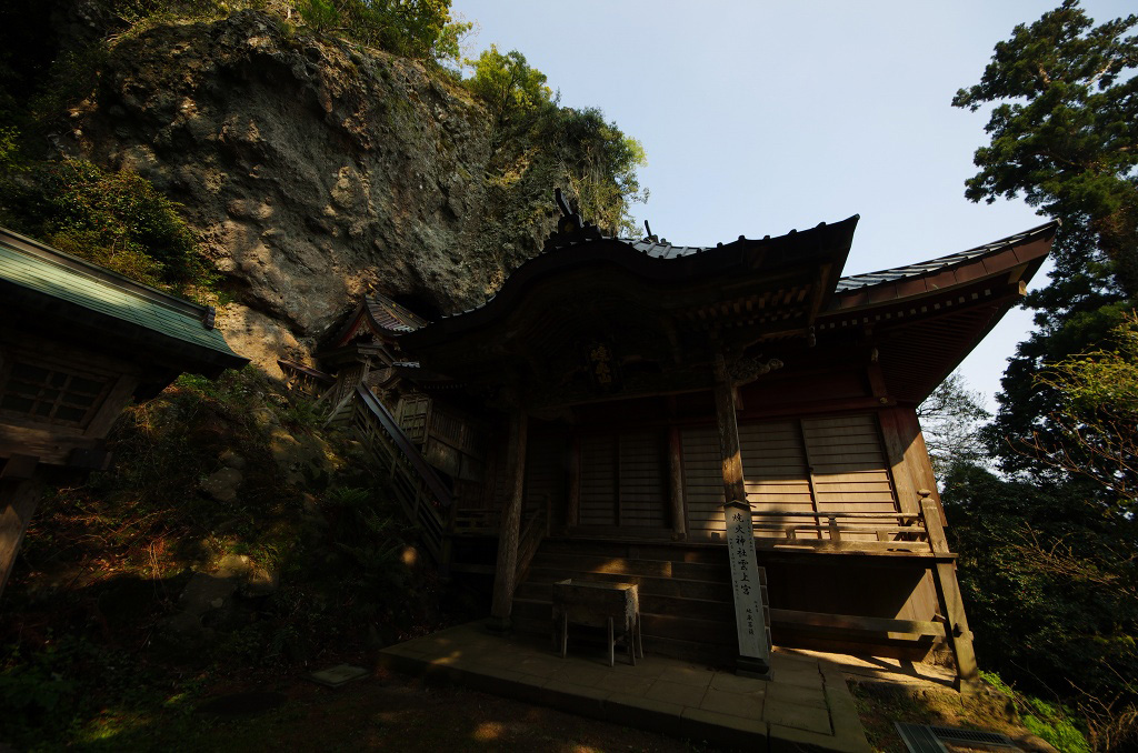 本殿(左側)は岩壁の洞穴にめり込むように建てられてますね。