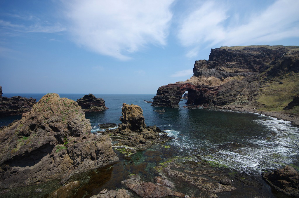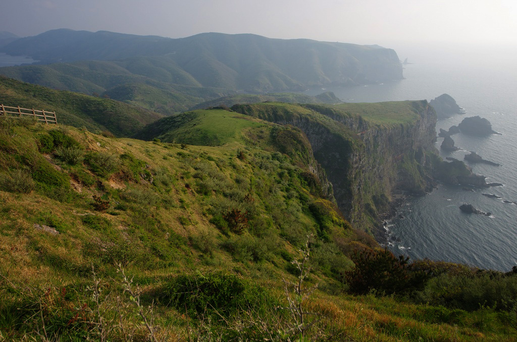 赤尾展望台から国賀海岸、通天橋、摩天崖を望みます。