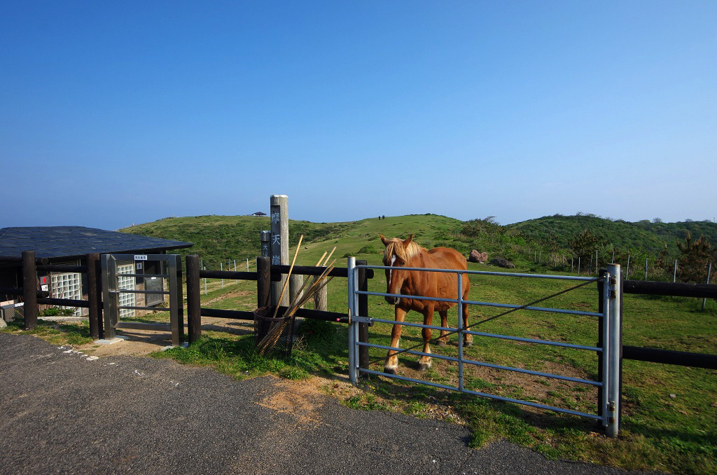 そのまま摩天崖の上までやって来たのですが、放牧されている馬が前足で地面を引っ掻きながら外に出る気満々だったので、今回はパスしました。