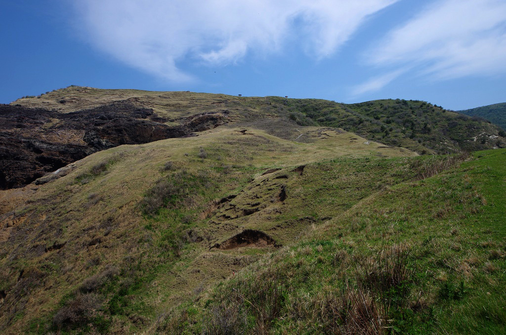 再び稜線沿いに伸びる牧場道路へ上がります。