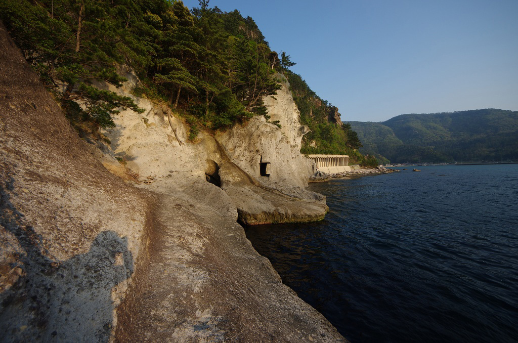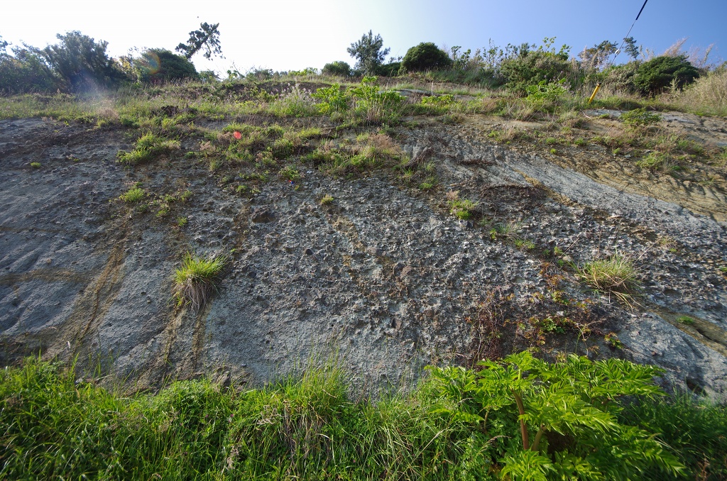 この辺りの白い岩石は、流紋岩や粗面岩(アルカリ成分を多く含む中性の火山岩)なんだそうです。