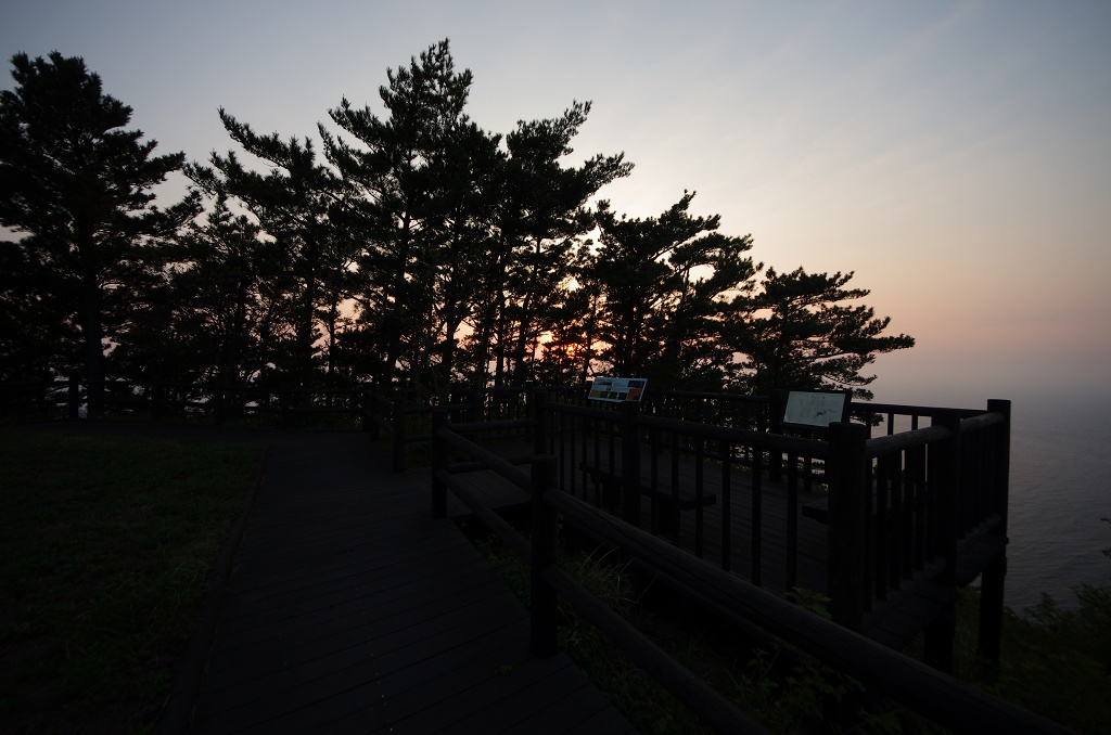 840mほど歩いて標高40mまで下ったところに第二展望台というのがあって、そこがローソク岩と夕日がよく見える場所なんだとこんなところで気が付きました。