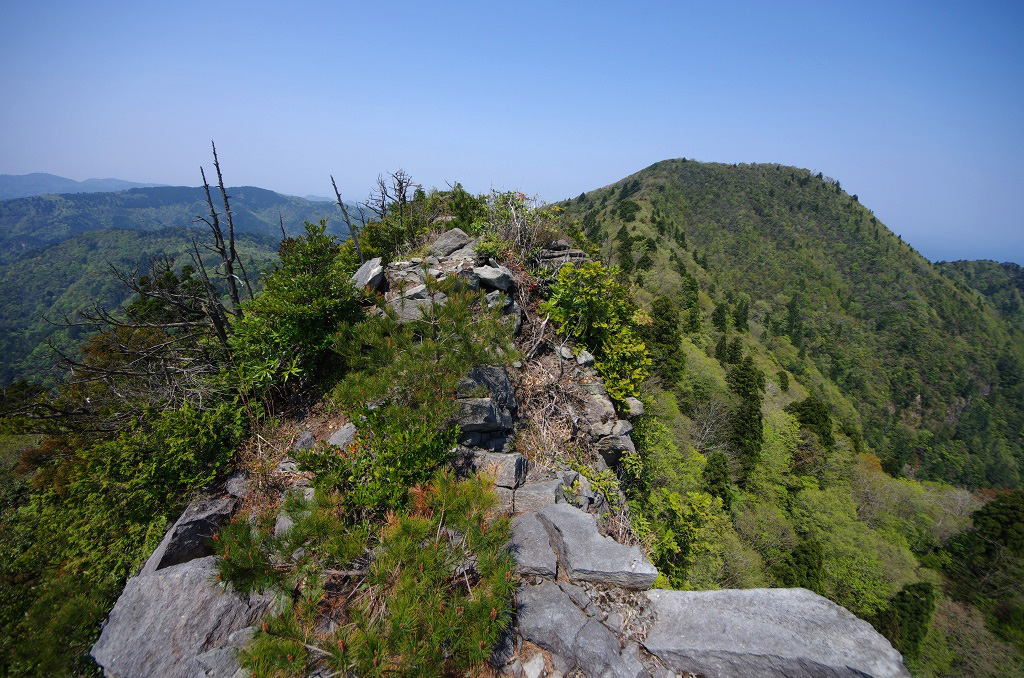 槍ヶ岳も真っ青な尖った岩山で360度の眺望です。