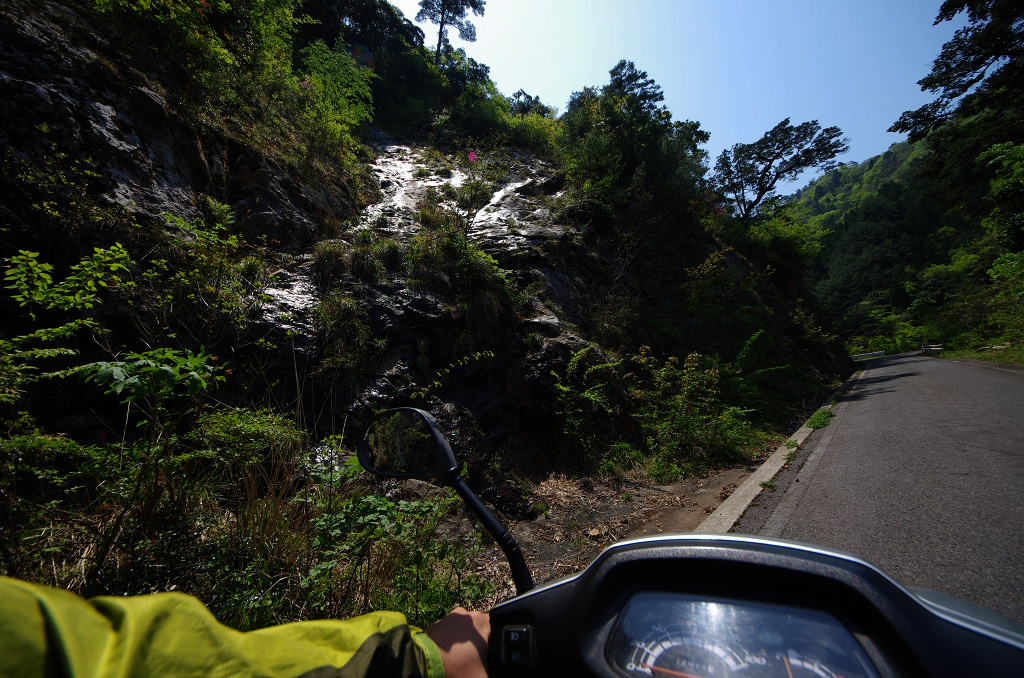 スクーター走行用に厚着してたんですが、ここまで登ったらさすがに汗だくになってしまったのでTシャツ1枚になりました。(普段登山してる時だったら早々に脱いでるんですけどね〜、ここまで延々と登ることになるとは思ってませんでした)