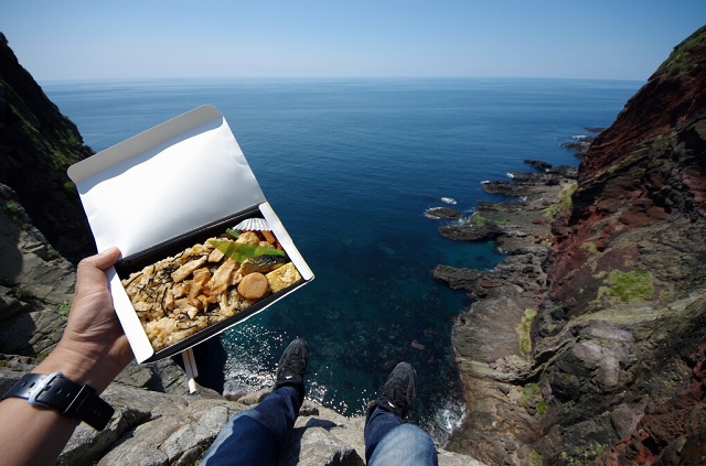 柵がないのをいいことに、崖に座って弁当をいただきました。