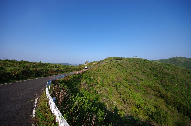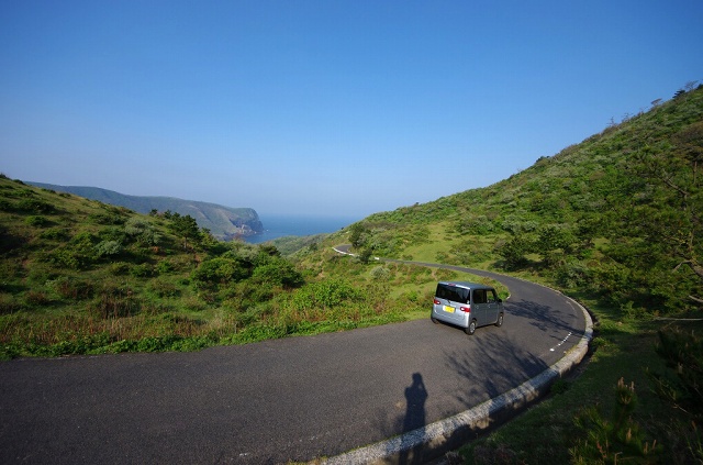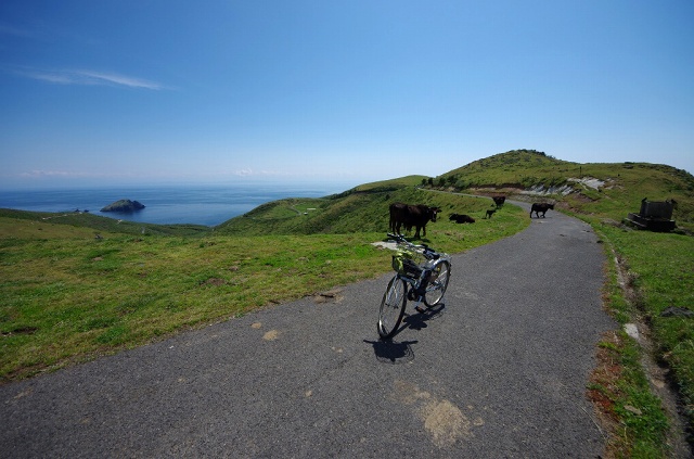 アカハゲ山。(この島での足はホテルから借りた電動アシスト自転車)