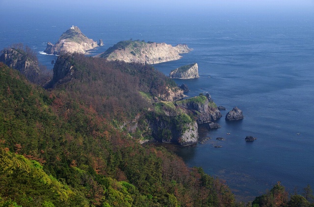 赤尾展望台から国賀海岸、通天橋、摩天崖を望みます。