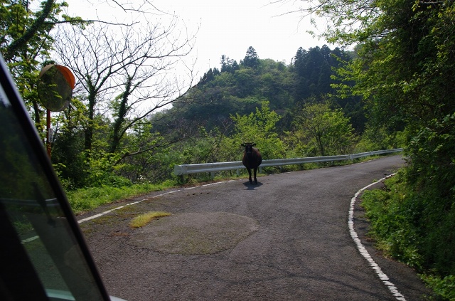 お母さん牛がこちらに睨みをきかせているので、わざわざ私がコースを外れて通過せねばならないのでした。(写真はしばらく登ってから振り返ったところ。まさにコースの上で子牛が寝てます)