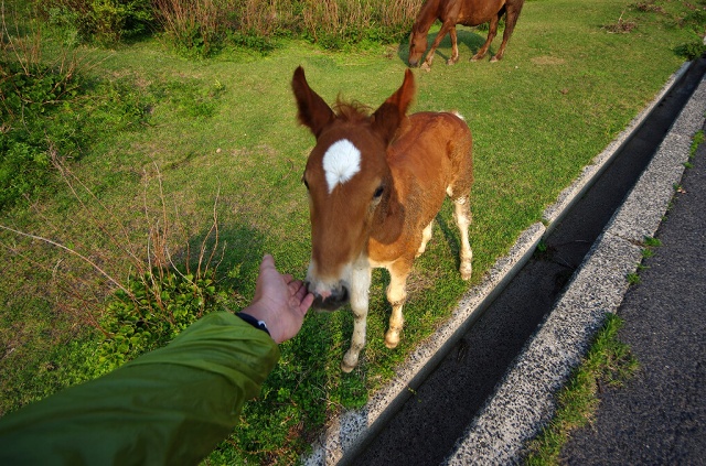 ちゃんと顔を覚えていたのか、すぐに歩み寄ってくる馬たち。(写真の奥にはまだ遊歩道上で寝ていた子牛と睨みをきかせる母牛。もちろん避けて通りましたよ)